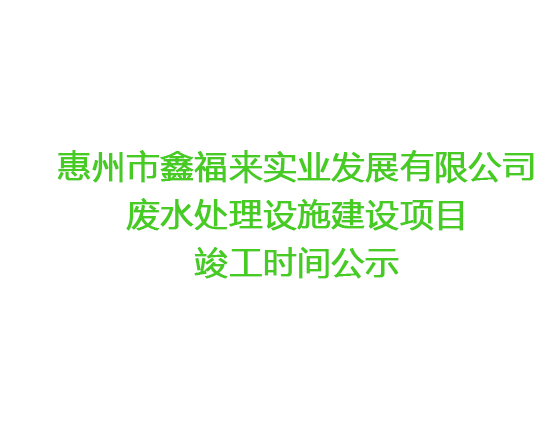惠州市鑫福來實業(yè)發(fā)展有限公司 廢水處理設施建設項目竣工時間公示