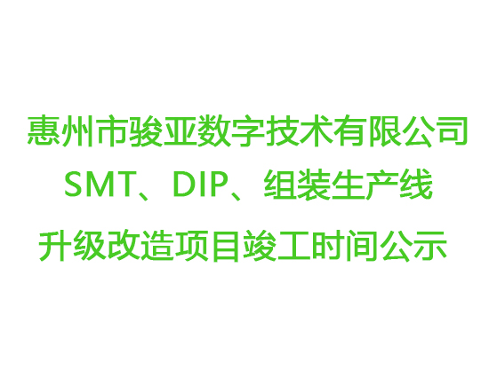 惠州市駿亞數(shù)字技術有限公司SMT、DIP、組裝生產線升級改造項目竣工時間公示
